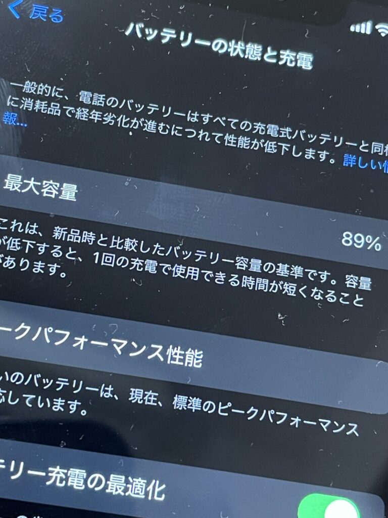 - バッテリー → 最大容量89%(新品は100%)