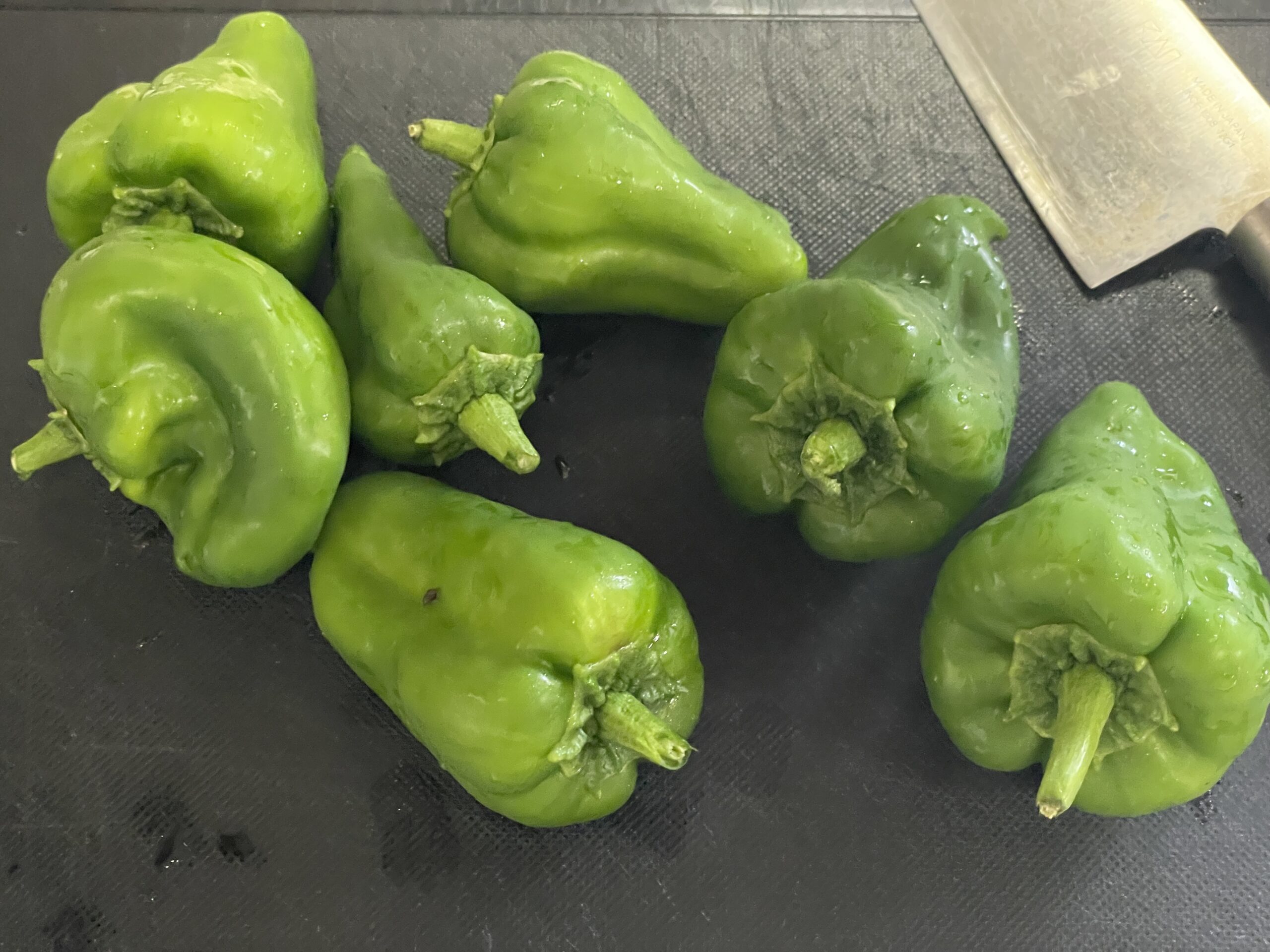 ピーマン7個。これを前にして何を作るか迷うらふパパ。