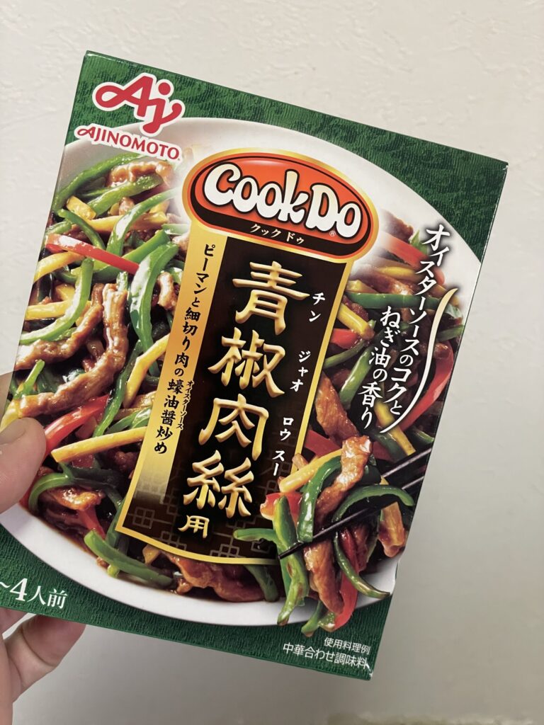 ピーマン、タケノコ、肉を全部合わせ、クックドゥのソースを投入!